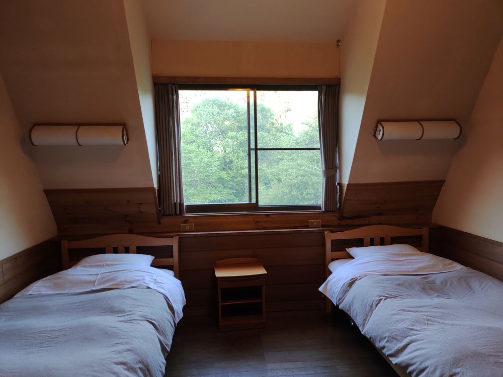 ロフト付でツインベッドの洋室のお部屋(7,000円/人)に泊まりました。