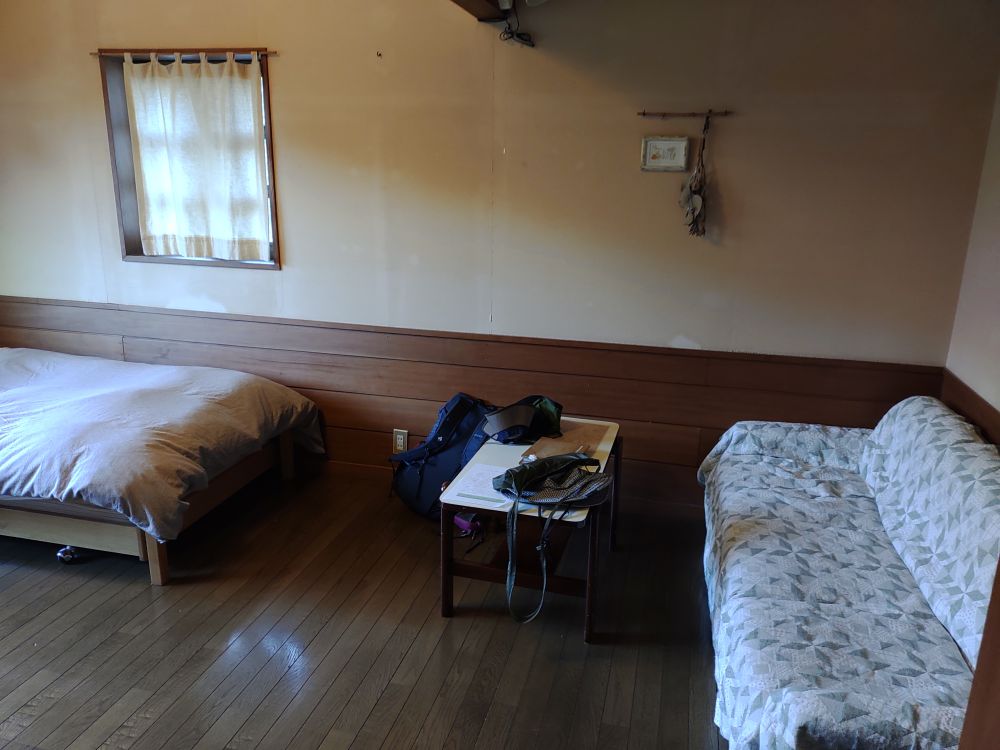 山小屋だから当たり前なのかと思うけど、エアコンはない。。また、夜は虫が入ってくるから窓を閉める必要があり、暑いのでは!?と不安になったけれど、夜は十分に涼しかったです。